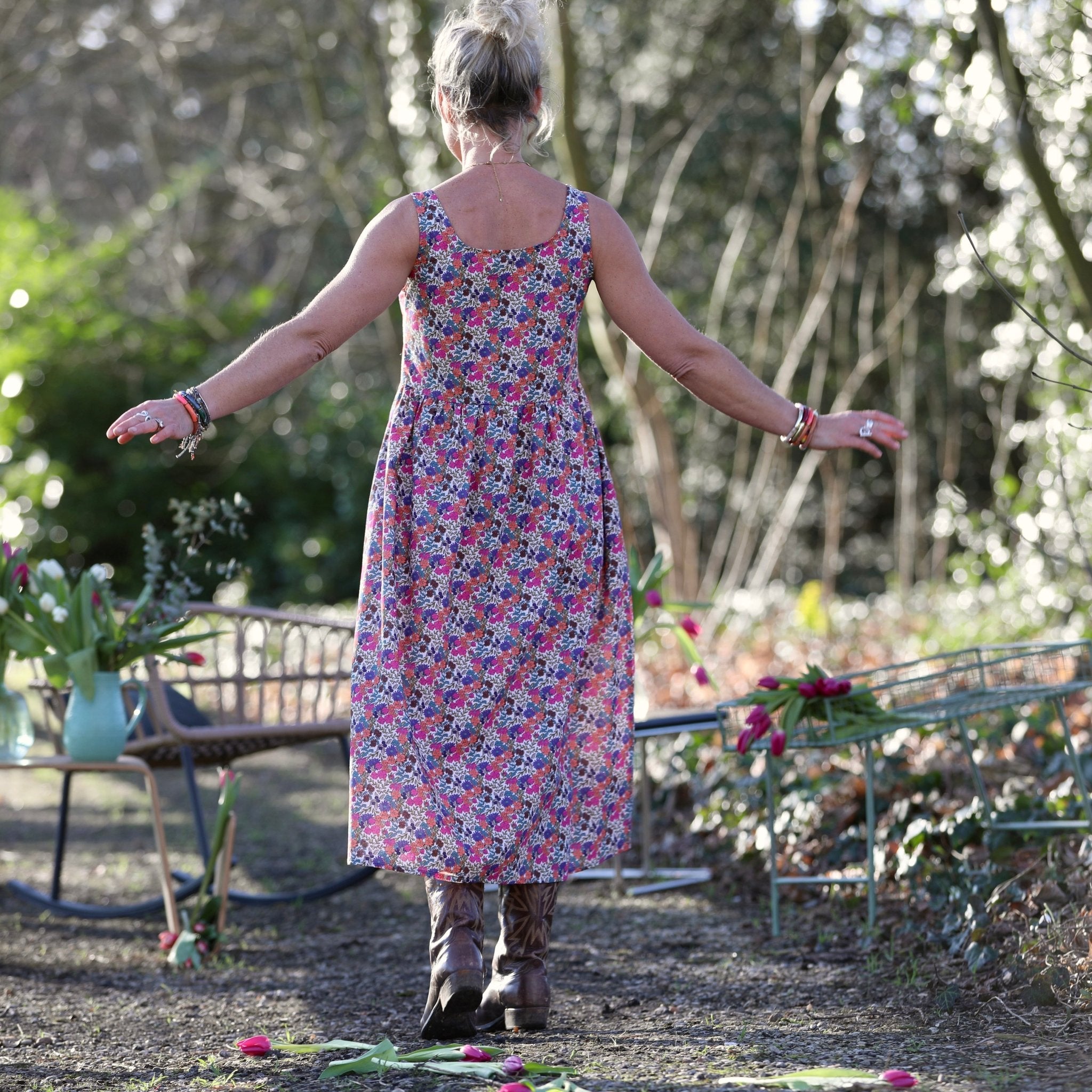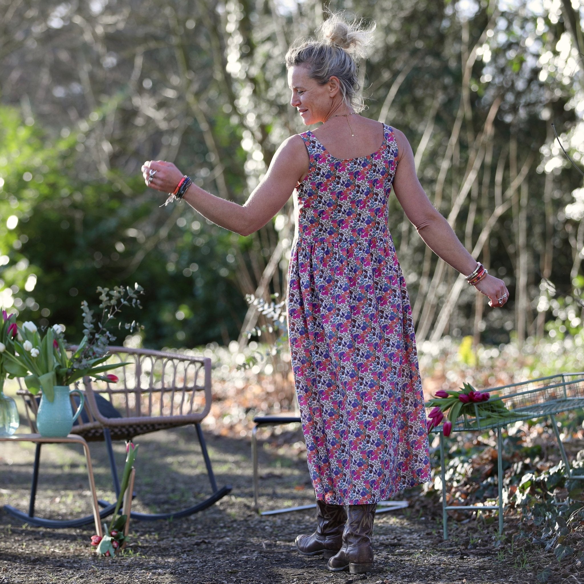 La robe Solène se porte aussi bien seule en plein été, avec des sandales ou des baskets, que plus habillée avec le petit boléro Ange pour une silhouette élégante et structurée. Elle s’adapte facilement aux envies du jour, du matin au soir.