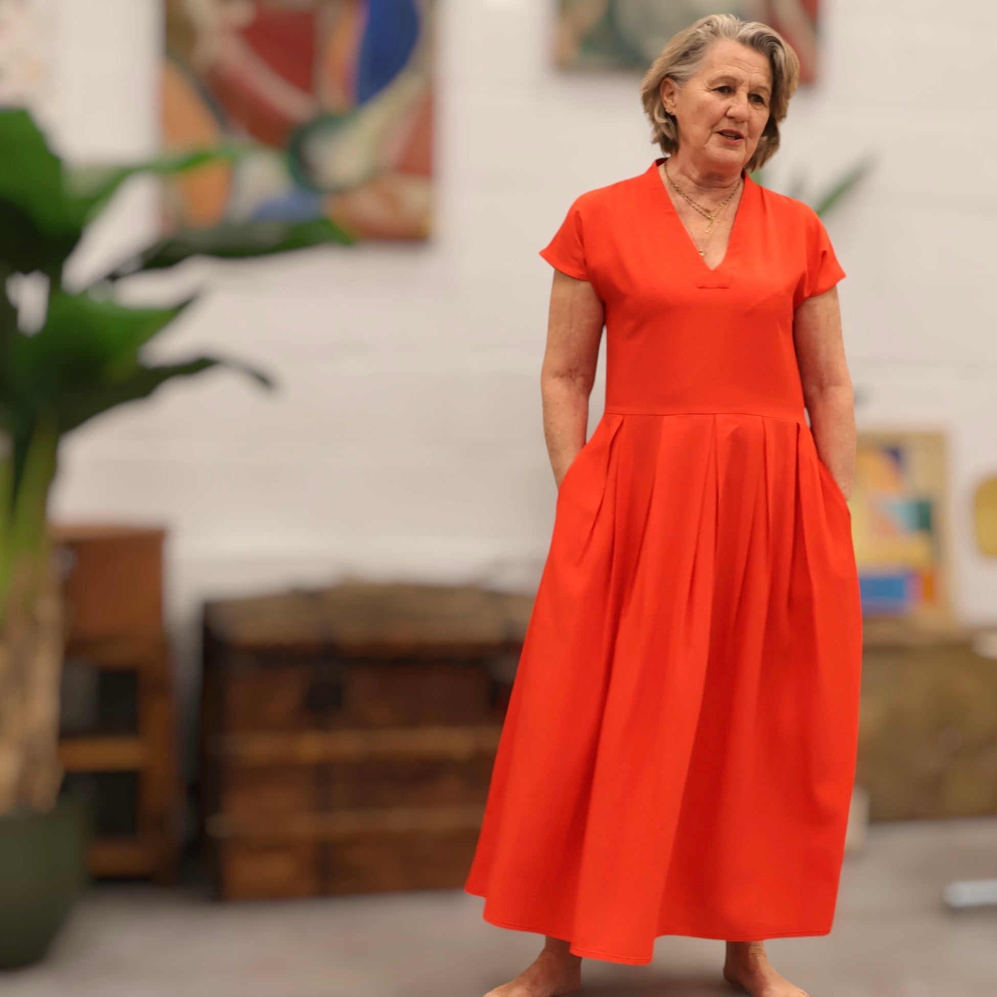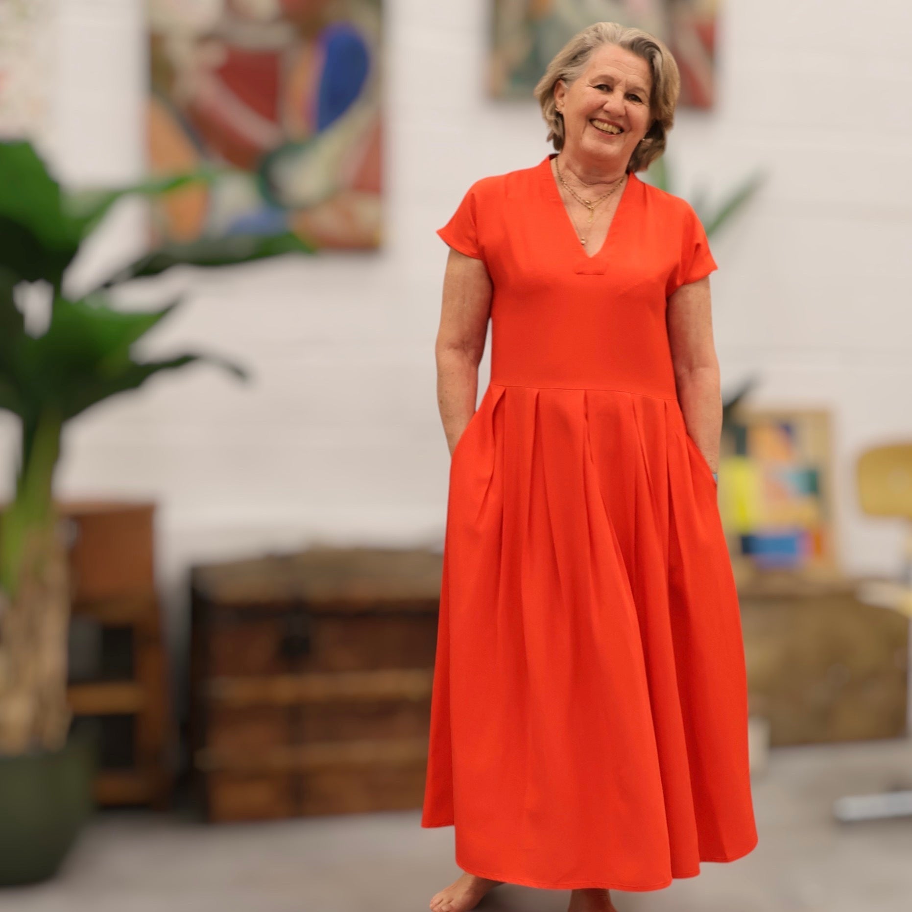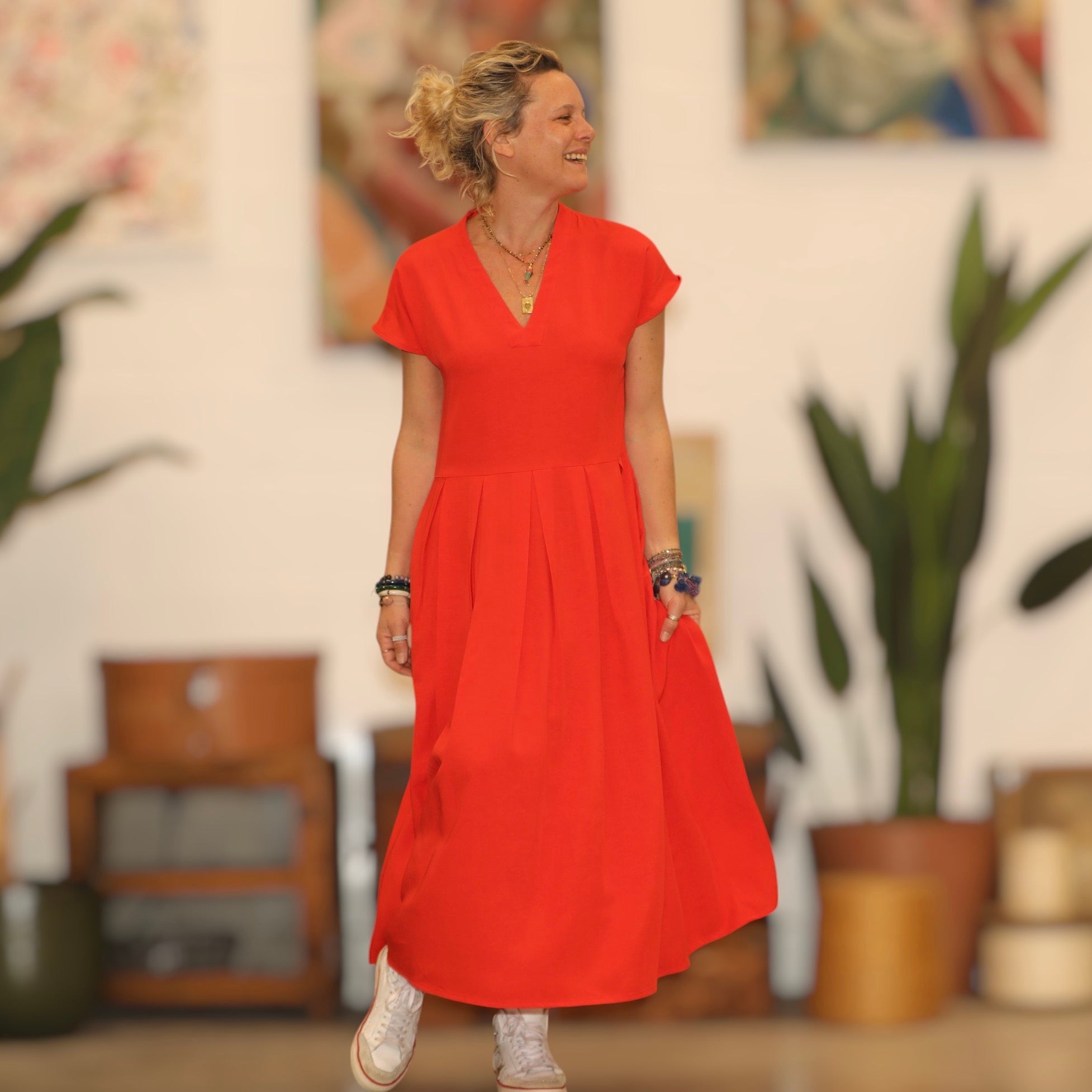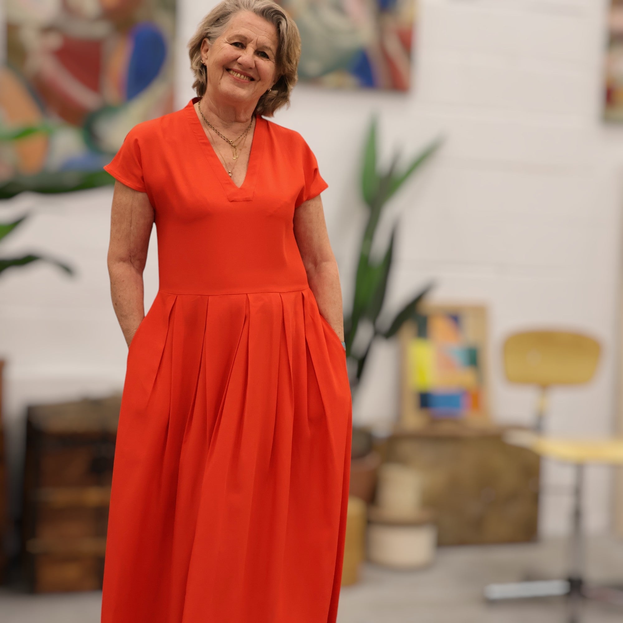 Sylvette se distingue par un ravissant col en V souligné par une parmenture élégante.