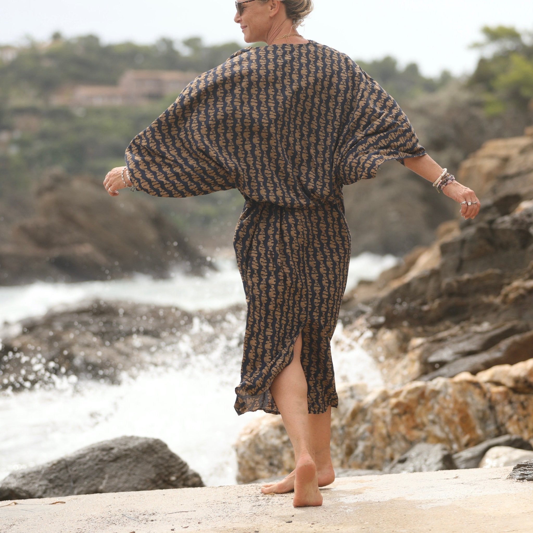 Robe Xiou viscose Batik marine/camel