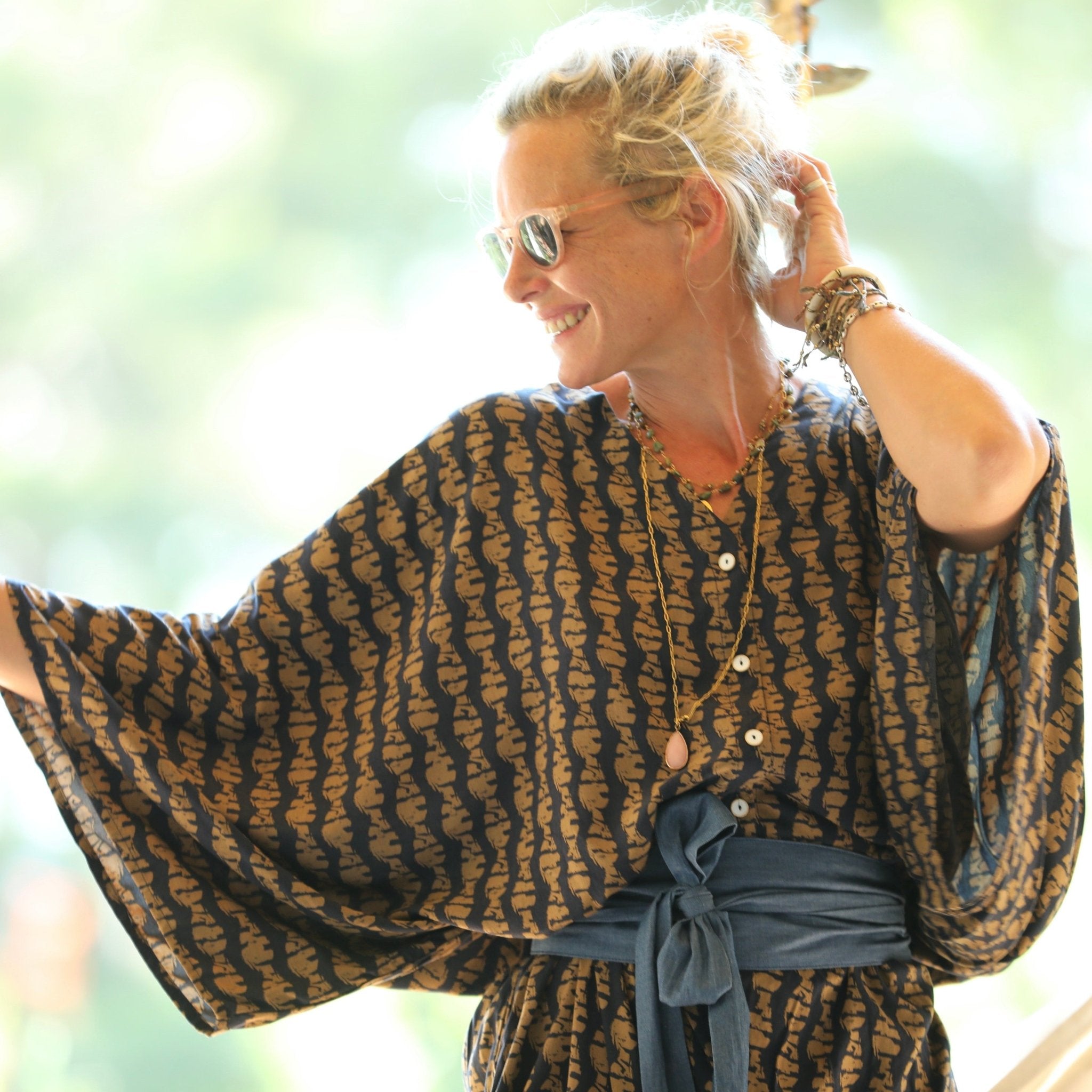 Offrant une taille unique, elle s'enfile facilement et se règle à la taille avec une ceinture pour blouser la partie supérieure, créant ainsi une allure très élégante.