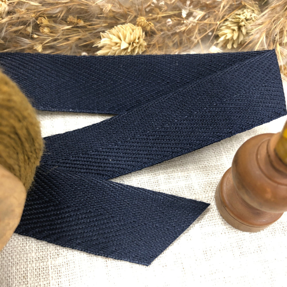 Galon de sergé chevron bleu marine 2 cm - au mètre - Quintessence