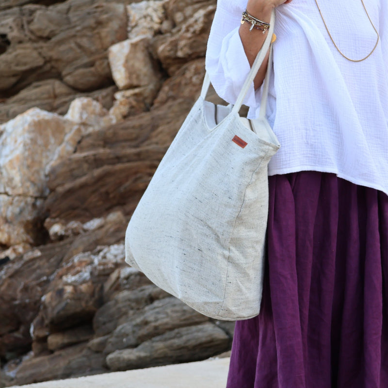 Sac Alfred en lin naturel chiné - doublure en lin - Quintessence