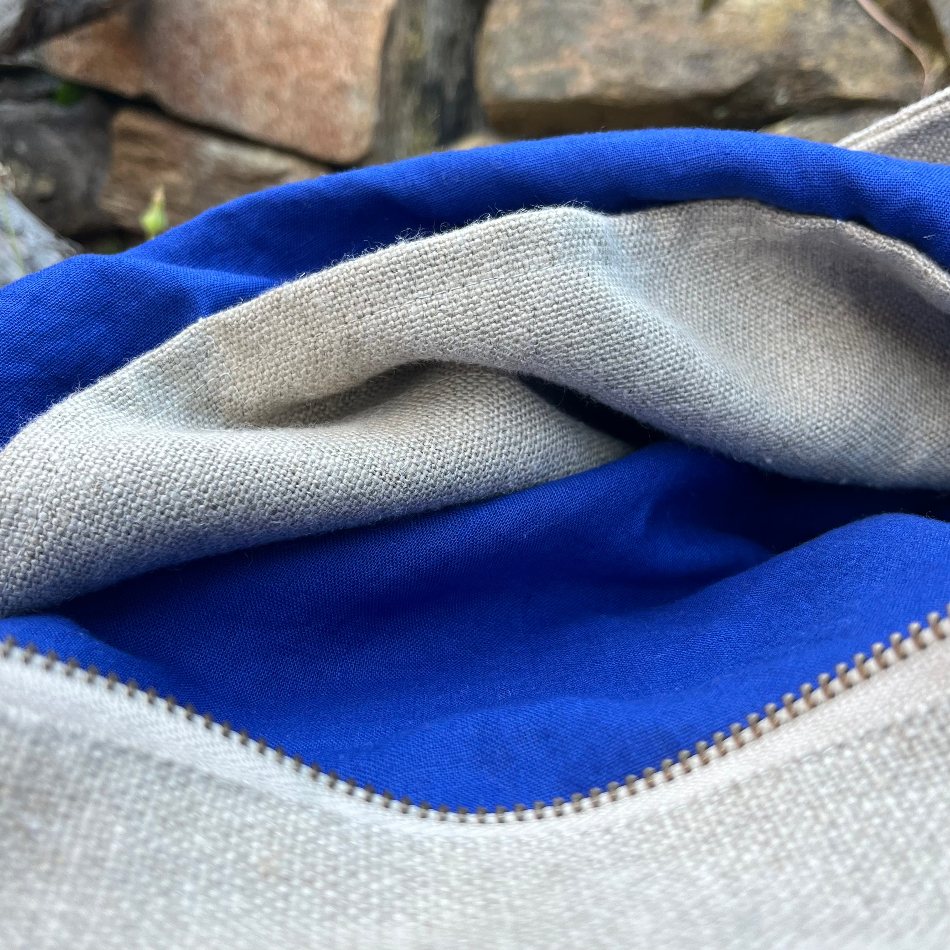 Sac Alfred en lin naturel - doublure en lin bleu majorelle