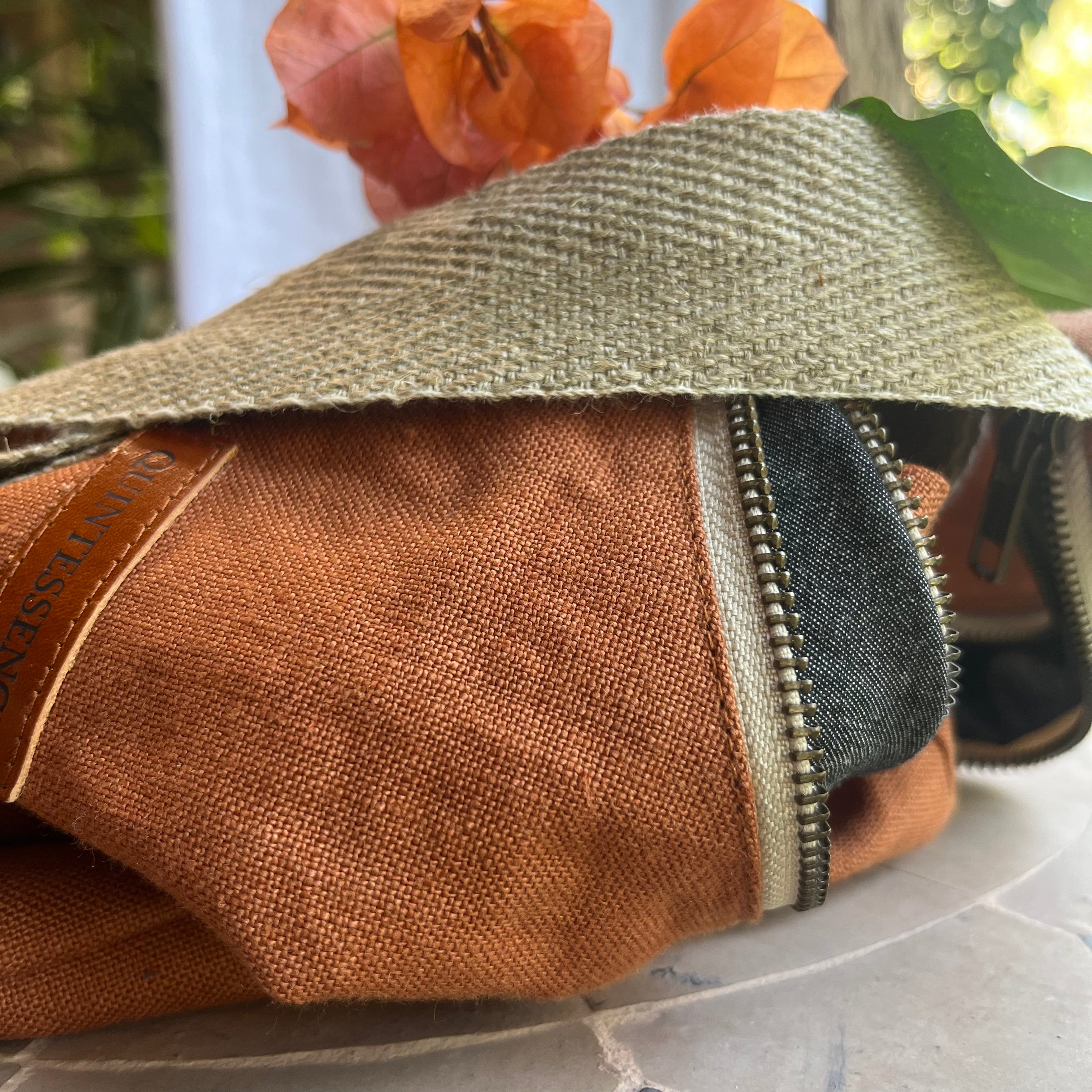 La bandoulière réglable en lin a été fabriquée dans le nord de la France, permettant de changer la longueur du sac facilement.