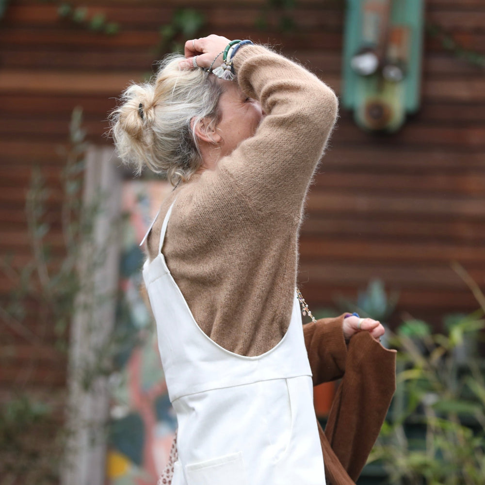 Salopette Mariette en jean de coton blanc cassé - Quintessence