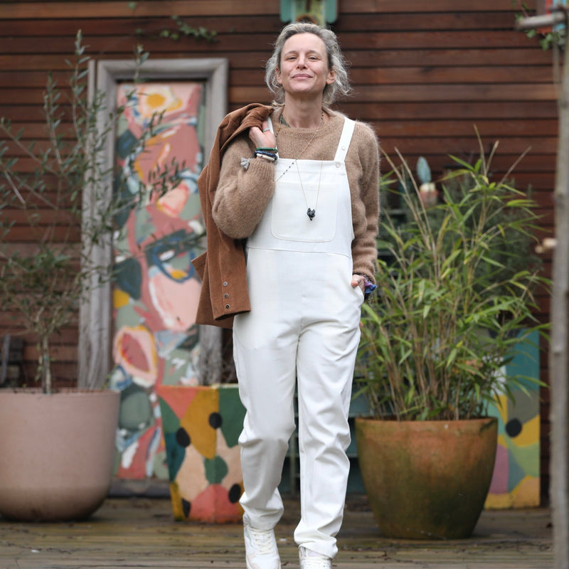 Salopette Mariette en jean de coton blanc cassé
