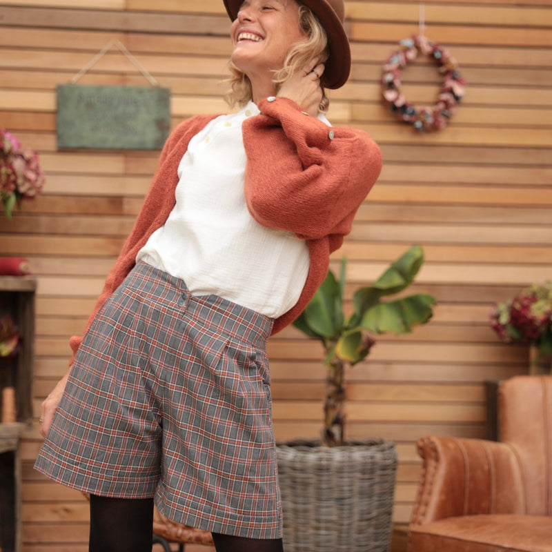 Aubin est un joli short qui allie féminité et élégance. Sa taille haute est ornée de deux petits boutons français et ses jambes sont évasées.