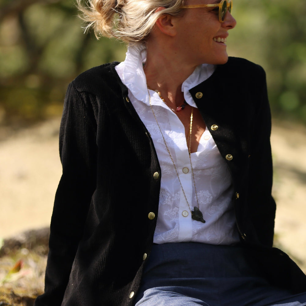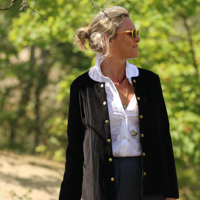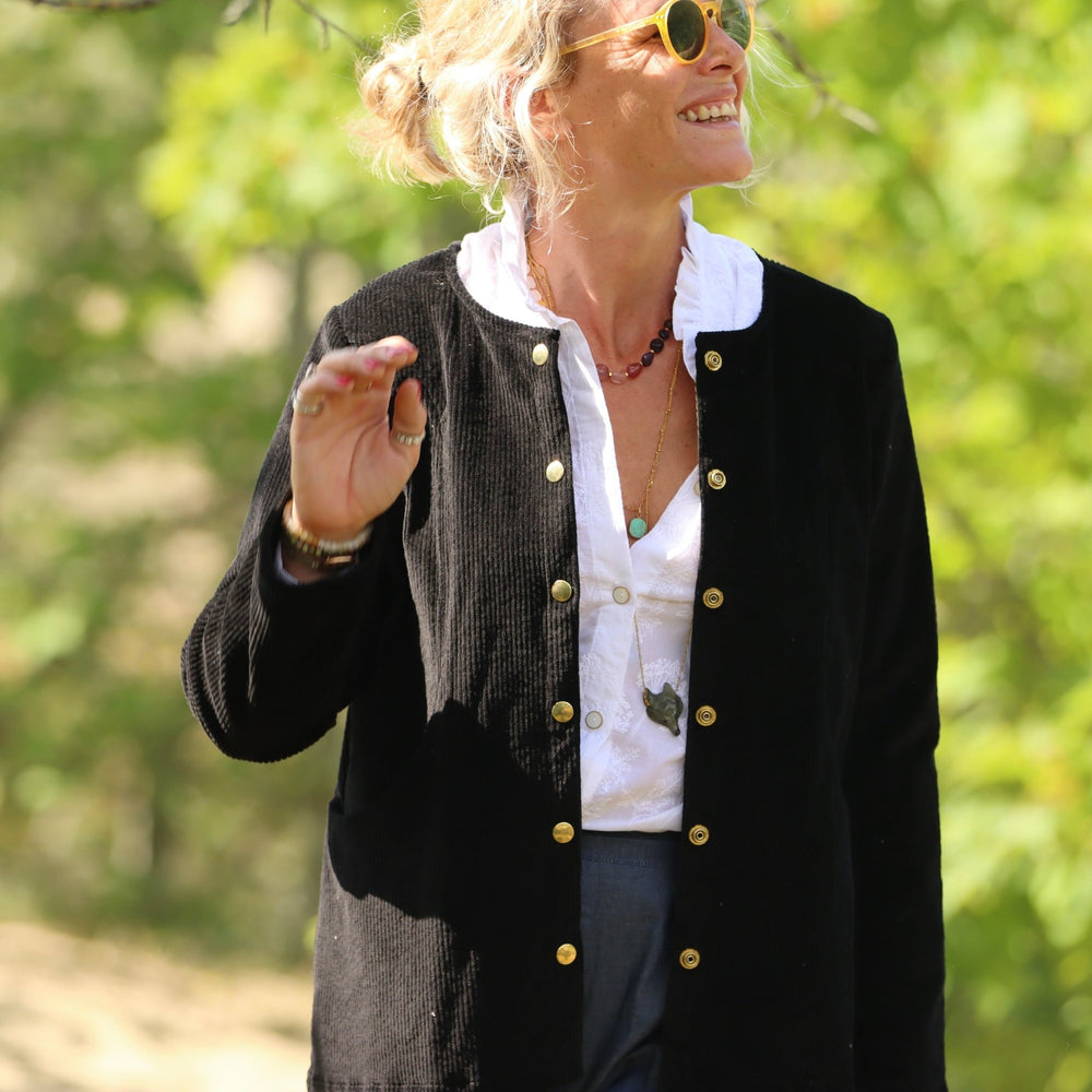 Voici Annie, une veste aux courbes délicatement découpées de style princesse.